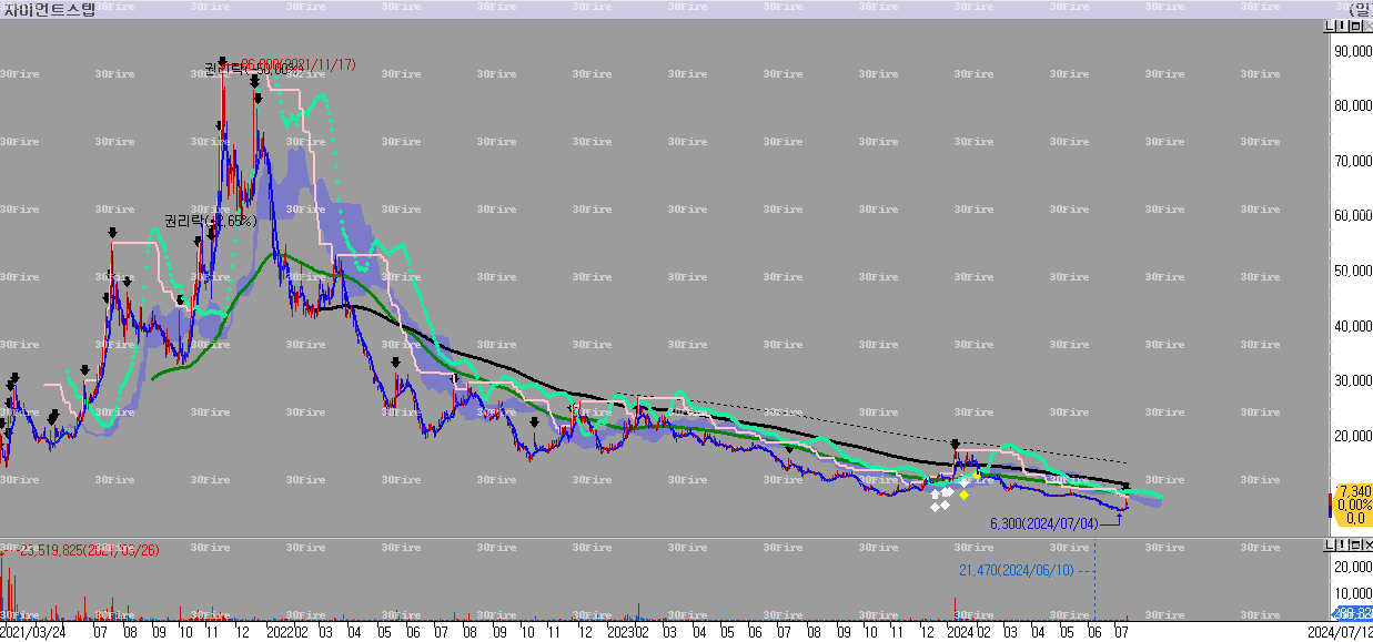 맥스트 주가는 2년 동안 꾸준하게 하락하고 있으며, 장기이평선을 돌파하면서 지지를 받지 못하고 있기 때문에 매수할 이유와 근거를 찾기 어렵습니다. 하락 추세를 돌린 이후에 관심을 갖는 것이 좋습니다.3. 자이언트스텝 (289220)